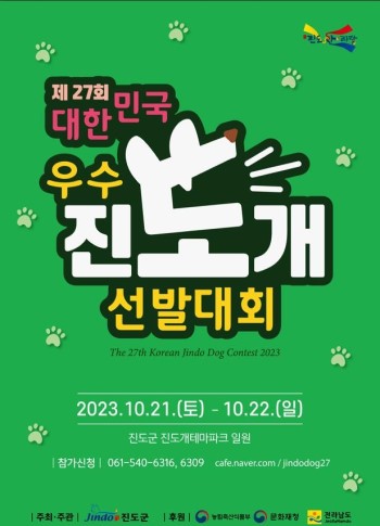 '제27회 대한민국 우수 진도개 선발대회'가 오는 21일부터 이틀간 전남 진도개테마파크 일원에서 열린다.