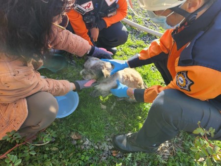 충남 청양에서 소방관들이 화마 속에서 의식이 없는 반려견을 구조해 꺼진 심장을 되살려냈다.