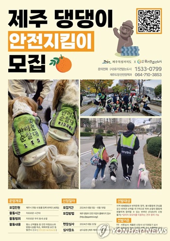 희망자는 '제주 댕댕이 안전지킴이 누리집'(www.jejupetrol.org)에 신청하면 된다.