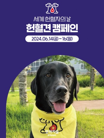더존비앤씨티의 반려견을 위한 문화레저복합타운 ‘강아지숲’이 오는 14일 ‘세계 헌혈자의 날’을 맞아 ‘헌혈견 캠페인&이벤트’를 진행한다.
