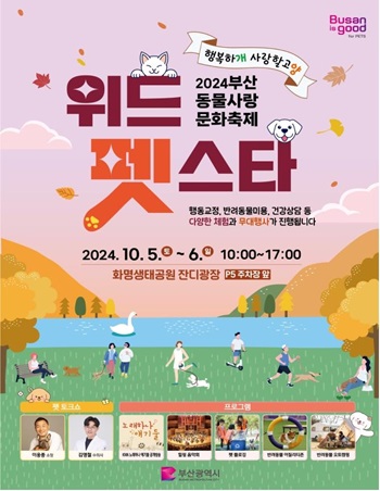 부산시는 오는 10월 5일부터 6일까지 북구 화명생태공원 잔디광장에서 부산 동물사랑 문화축제 '2024 위드펫스타'를 한다고 30일 밝혔다.
