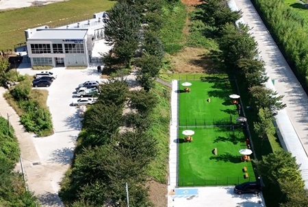 놀이터는 대형견(400㎡)과 중소형견(512㎡)으로 공간을 구분하고 1.5m 높이 울타리에 인조 잔디를 비롯해 음수대, 테이블, 의자, 차광막, 594㎡ 규모의 주차장 등의 편의시설을 마련했다.