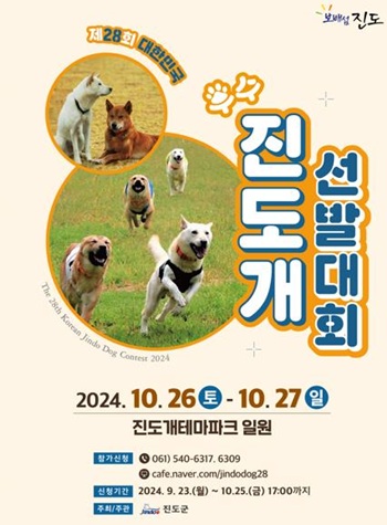 '제28회 대한민국 우수 진도개 선발대회'가 오는 26일부터 이틀간 전남 진도군 진도개테마파크 일원에서 열린다.