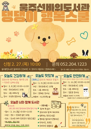 울주선바위도서관, 견주 100명 대상 교육·체험 프로그램