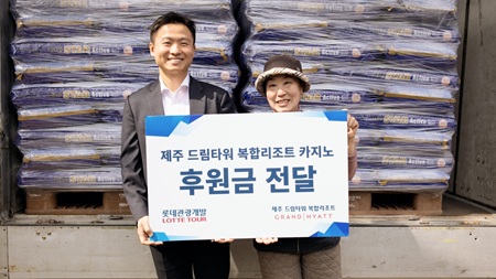 제주 드림타워 복합리조트는 지난 3일 제주시 아라동에 있는 유기견 보호소 '행복이네협회'(이하 행복이네)를 찾아 600만원 상당 15㎏짜리 사료 200포를 후원했다고 4일 밝혔다.