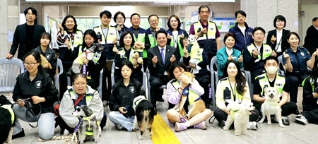 이날 시청에서 열린 활동 선서식에는 그동안 반려견 순찰대 교육을 함께 했던 안양동안경찰서 관계자와 연성대 반려동물산업과 교수, 학생 및 소속 훈련견들이 참석했다.