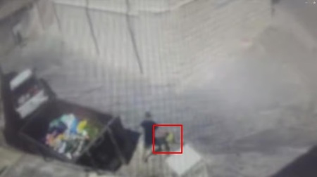 범행 장면이 녹화된 CCTV 영상을 보면 용의자는 새끼 고양이를 넣은 봉투를 가져와 금속 쓰레기 배출함에 내동댕이치는 모습이 담겼다.