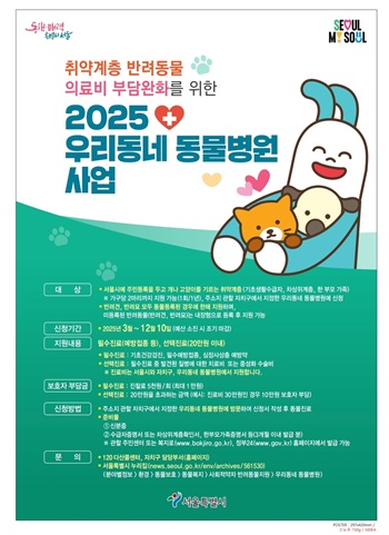 박희영 용산구청장은 "취약계층 주민들이 가까운 지정 병원에서 부담 없이 반려동물의 진료와 치료를 받을 수 있도록 적극 안내하겠다"고 밝혔다.
