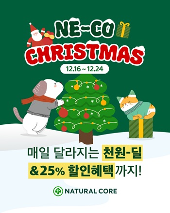 네츄럴코어가 연말을 맞아 오는 24일(수)까지 다양한 제품 특가와 맞춤 할인 혜택을 제공하는 크리스마스 어드벤트 할인 프로모션을 진행한다고 19일 밝혔다.